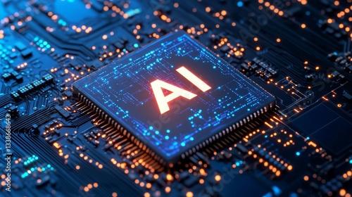 Ai chip on circuit board with glowing elements highlighting technology and innovation