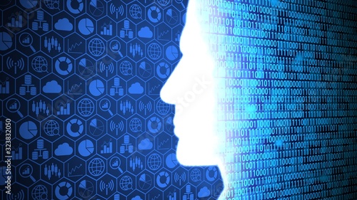 AI Computing and Thinking Big Data HUD including Binary Code with Head Shape Background Ver.2 of 3