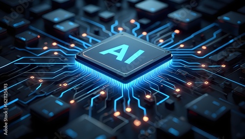 AI concept Artificial Intelligence technology circuit motherboard chip computer design machine deep learning data network analysis futuristic. 3d rendering..