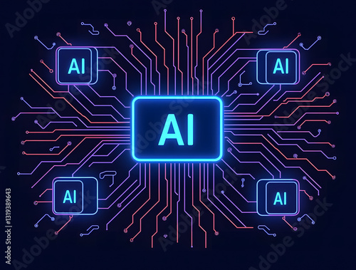AI Core: A conceptual illustration of an AI core, the brain of the future. intricate circuits converging on a central processing unit, signifying artificial intelligence