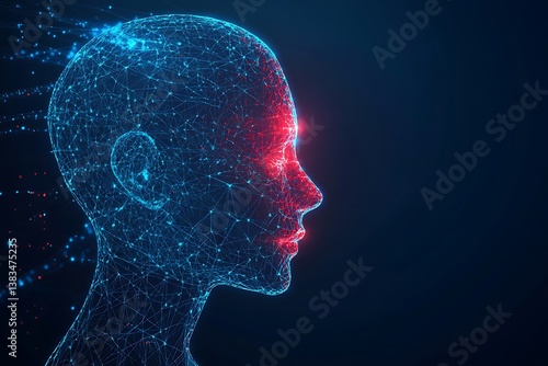 AI digital head with glowing neural network, futuristic technology concept, interconnected data points, high resolution photo