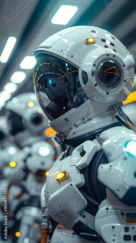 AI Driven Space Station with Robots and Astronauts Collaborating in Futuristic