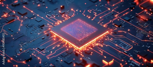 AI Enhanced Computer Chip Analyzing Data with Flowing Electrical Signals 3D Render Illustrating Technology and Computing Concepts