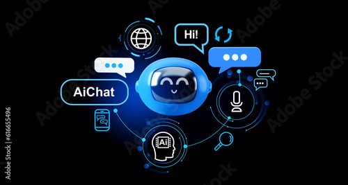 AI hologram and chat bot speech bubbles, helpdesk and customer support