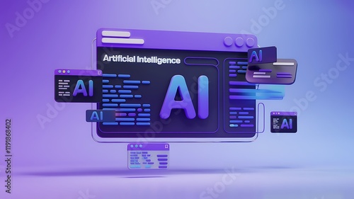 AI interface, code, digital technology, future, gradient background. Use tech website