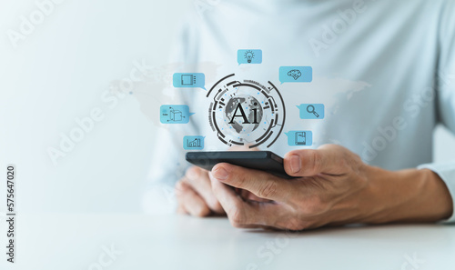 Ai or artificial intelligence chat program or software. knowledge and learning solution by genius automation programming. Smart search via cyberspace network, data and information system technology