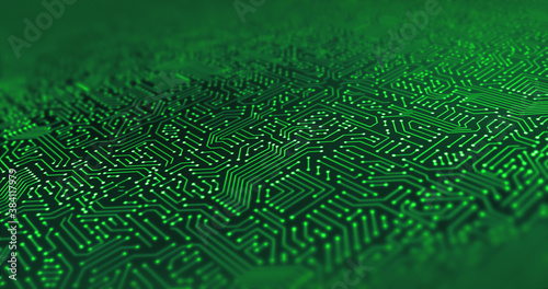 AI Processor Processing Data. CPU Circuit. Data Flowing. Computer And Technology Related 3D Illustration Render