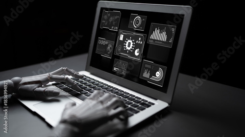 AI reading big data visualization dashboard, analyzing insights, identifying patterns, and generating strategic decisions through automated data interpretation. Latch