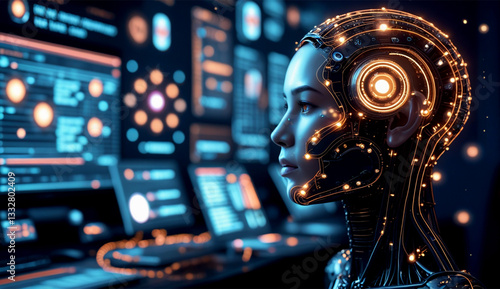 AI Robot watching computer