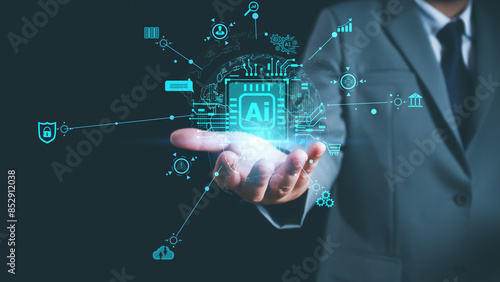 Ai technology, Artificial Intelligence. man using technology smart robot AI, artificial intelligence by enter command prompt for generates something, Futuristic technology transformation. Chat with Ai