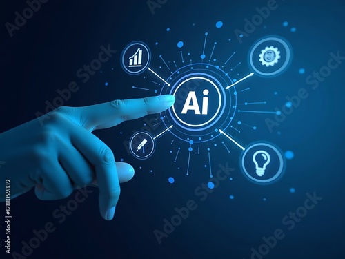 AI Technology Concept with Hand Pointing at Artificial Intelligence Icons