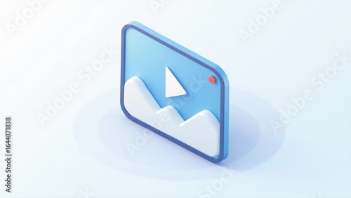 AI video software. Blue multimedia icon with play button and landscape