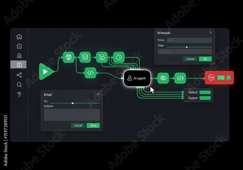 AI workflow automation artificial intelligence software interface nodes triggers data tool dashboard coding icon flow process technology 3d rendering.