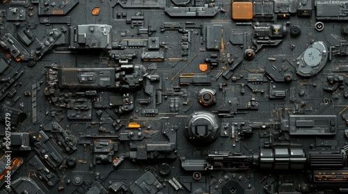 AI-controlled robotic arms precisely assembling micro-components on a dark gray industrial background