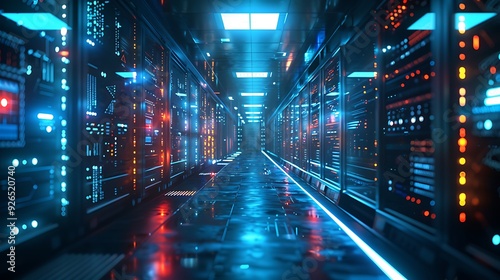 AI-driven data analysis with glowing data streams, interactive holographic charts, and predictive algorithms, set in a high-tech data center. Created Using: advanced data visualization,