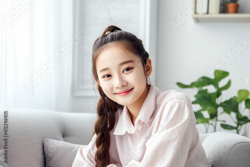リビングでのアジア人の女の子のポートレート AI生成画像 Generative AI