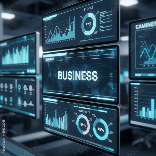 AI-Powered Business Insights: Holographic Charts on Computer Screens, Visualizing Data and Driving Decisions in a Futuristic Office Setting