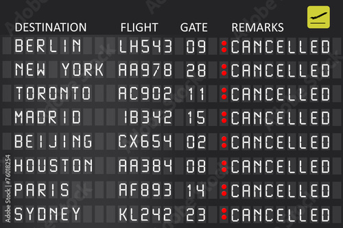 Airport billboard panel with cancelled flights