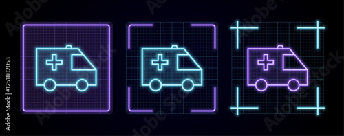Ambulance icon vector, cyber neon visual, glowing border grid vector.
