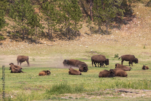 American bison grazing in a meadow