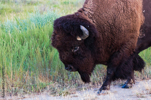 American Bison walking close by