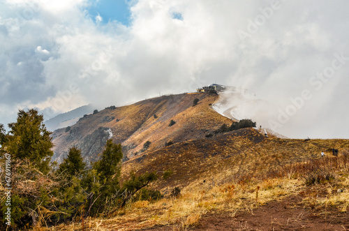 Amirsoy mountain peak covered in clouds (Tashkent region, Uzbekistan)