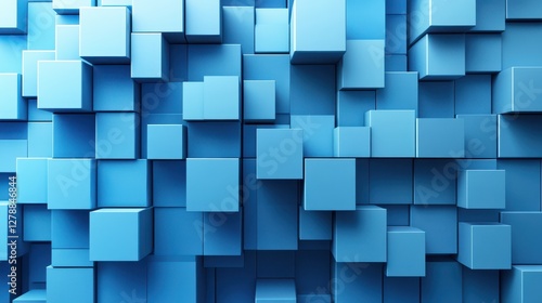 An abstract 3D render featuring geometric blocks on a dark background.