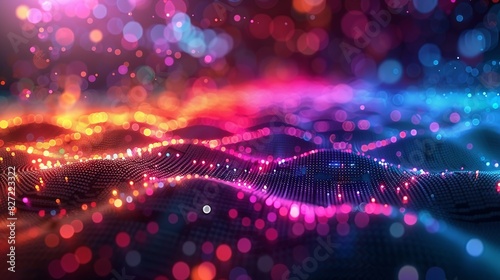 An abstract depiction of a neural network, with colorful data streams and nodes glowing against a dynamic background with a bokeh effect, representing the complexity of AI technology.