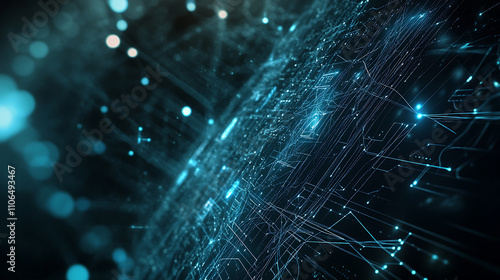 An abstract depiction of artificial intelligence is presented against a technological web background, illustrating the virtual concept