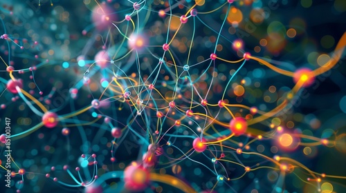 An abstract digital artwork representing the neural networks of an artificial intelligence system, with colorful nodes and connections pulsating and evolving in real-time.