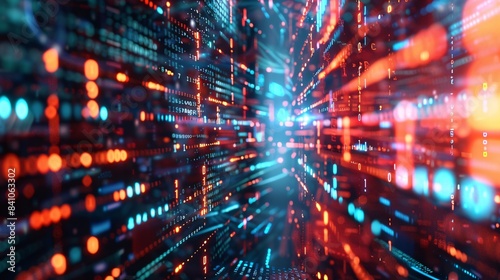 An abstract digital background featuring binary code with AI algorithms running in the background.