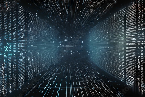 An abstract digital background with binary code and AI algorithms running in the background