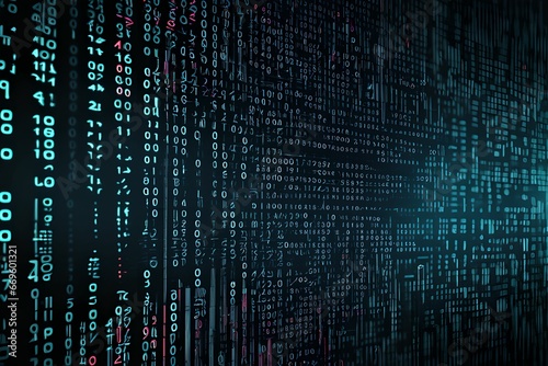 An abstract digital background with binary code and AI algorithms running in the background