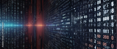 An abstract digital background with binary code and AI algorithms running in the background