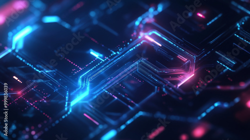 An abstract digital network background with glowing data streams and geometric shape