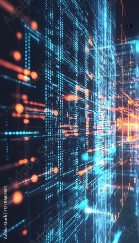 An abstract digital network with nodes and connections appears complex