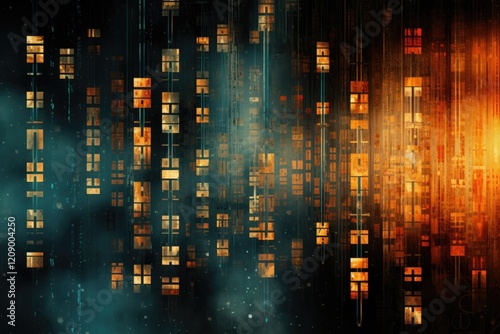 An abstract representation of encrypted codes and data streams illuminated by vibrant colors, showcasing the complexity of digital information in a modern and dynamic format