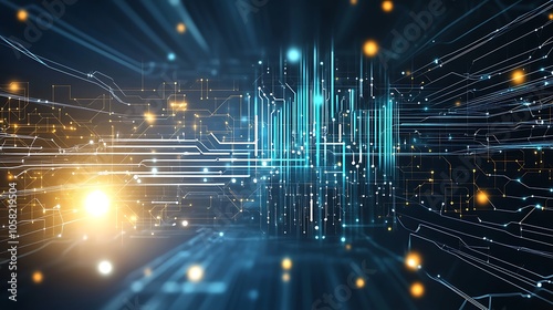 An abstract technology background featuring interconnected nodes and lines symbolizing a networking system powered by generative AI technology