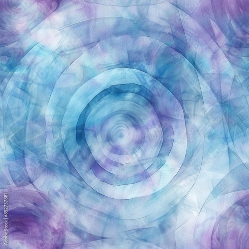 An abstract watercolor painting featuring a central swirling pattern of concentric circles in shades of blue, with subtle hints of purple around the edges. The soft, blurred edges of the circles creat