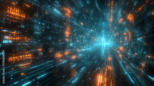 An advanced AI robot learning from a digital interface, surrounded by glowing data streams and neural networks