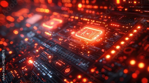 An advanced firewall interface with glowing red and orange icons, on a solid red background.
