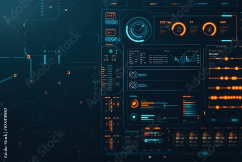 An advanced software interface displays real-time data metrics, analytics, and interactive features on a modern backdrop.