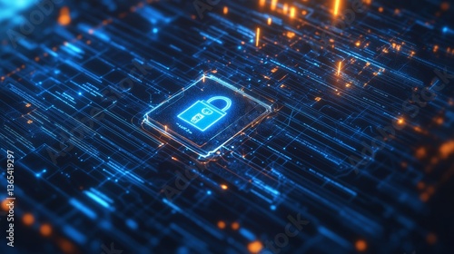 An AI powered cybersecurity system, detecting and neutralizing potential online threats before they compromise sensitive data, Security tech style