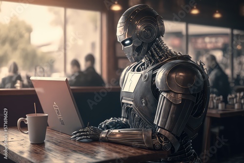 An AI robot helping in the coffee shop, assistant. Intelligence