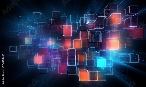 An array of glowing, neon squares, creating an abstract digital landscape Abstract, neon squares, digital landscape. Generative Ai