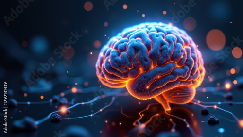 An artistic representation of artificial general intelligence with a human brain-like structure set against a dark background.