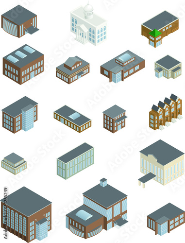 An assortment of vector isometric buildings