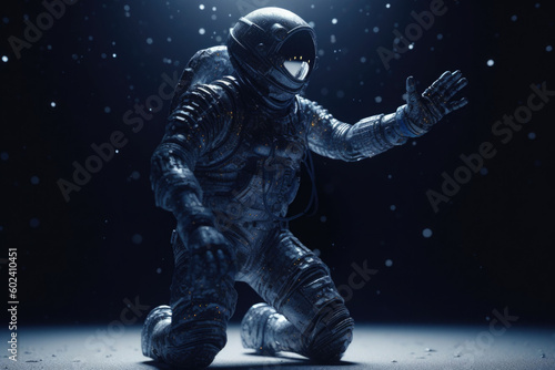 An astronaut in a spacesuit performing a dance in a secret location. Generative AI