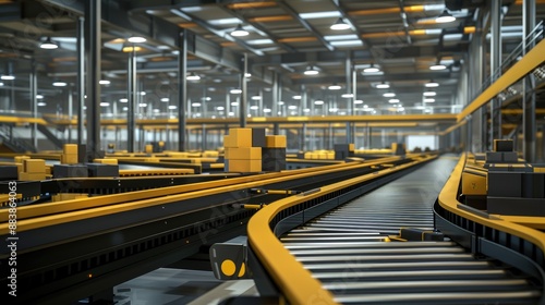 An automated parcel sorting center with conveyor belts and sorting robots