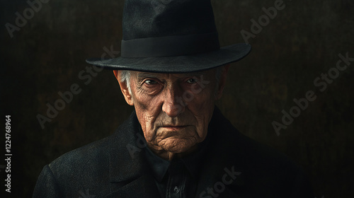 An elderly man with a black hat in a dignified posture